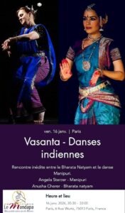 – Samedi 9 Novembre 2024 : Danse Indienne Manipuri dans la soirée partagée avec d’autres styles indiens, chant, conférences,